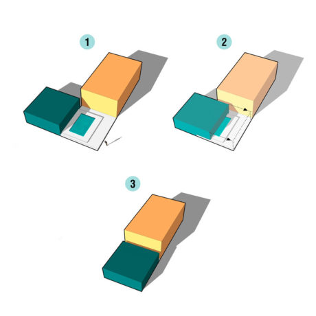 Diese Erweiterung integriert den beweglichen Teil des Konzepts in die Struktur des Hauses selbst und optimiert die Fläche des Hauses.