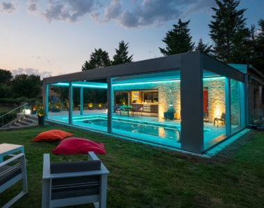 Grâce au déplacement du bâtiment mobile permettant de protéger l’espace piscine des variations de la météo, votre bassin modulable devient utilisable toute l’année.